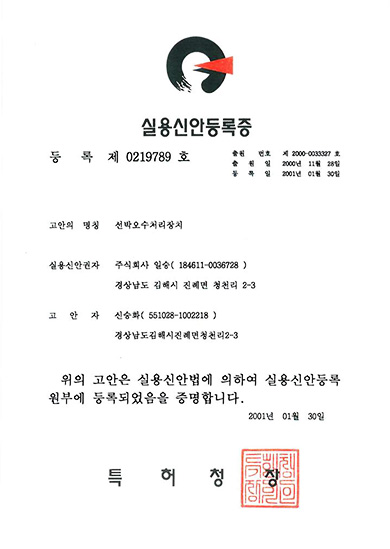 (주)일승 | 2008-04-01 | 2010-01-15 | 선박용오수처리장치 | 대한민국 |